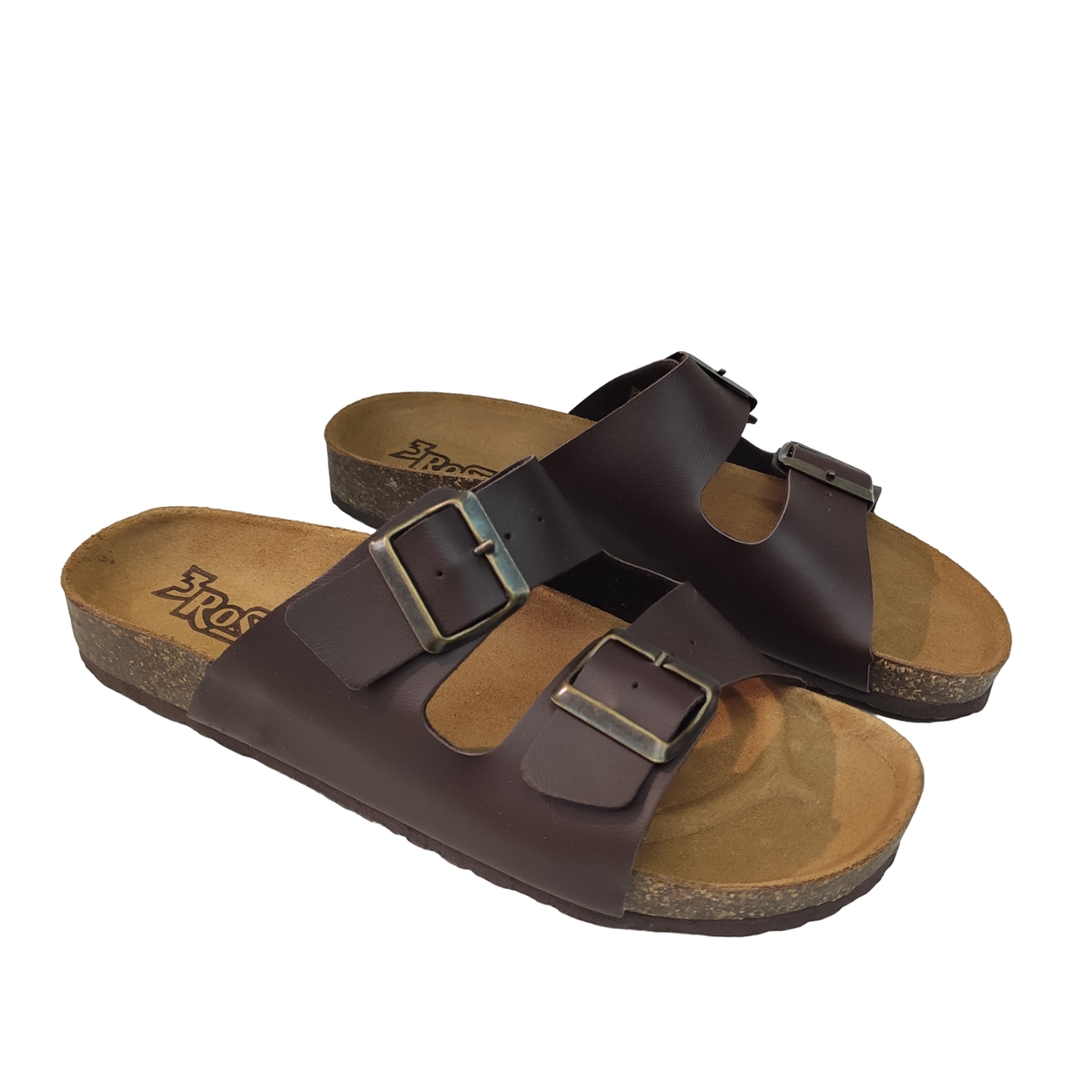 Ανδρική παντόφλα 3 ROSE απο οικολογικό δέρμα σε καφέ χρώμα. Διαθέτει λουράκια για να αυξομειώνεται η ένταση στο κουτουπιέ και να το ρυθμίζεται όπου θέλετε. Με δερμάτινο αναπαυτικό πάτο που θα σας χαρίσει ξέγνιαστες βόλτες.