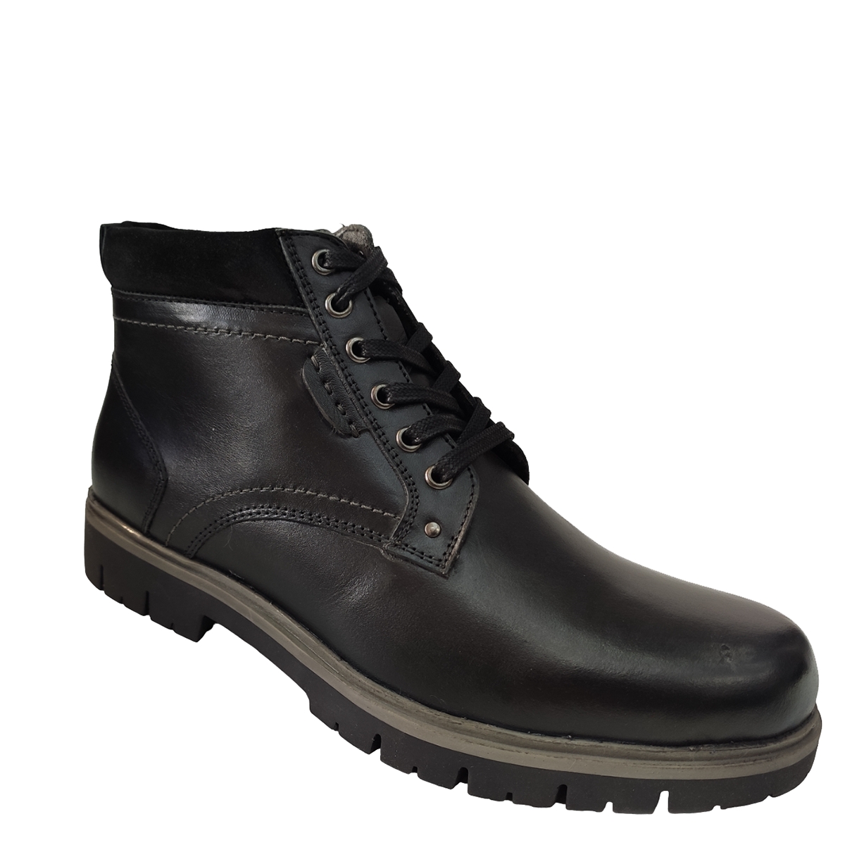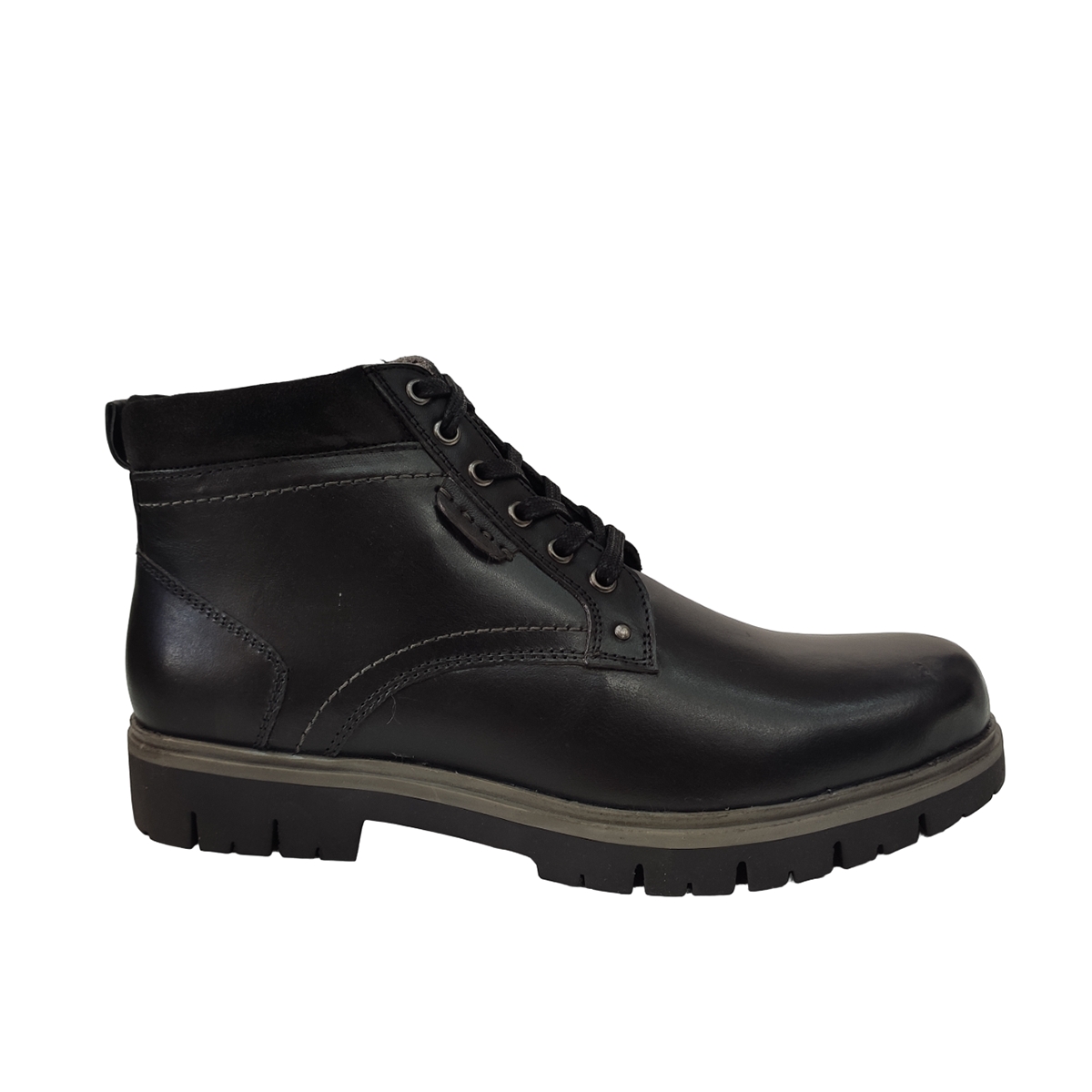 Ανδρικό δερμάτινο μποτάκι REVOLVER σε μαύρο χρώμα προστατεύει τα πόδια σας κατά την διάρκεια του χειμώνα. Προσαρμόζεται στη φόρμα του ποδιού παρέχοντας επιπλέον άνεση. Είναι ανθεκτικό στην καθημερινή χρήση με διάρκεια στο χρόνο.