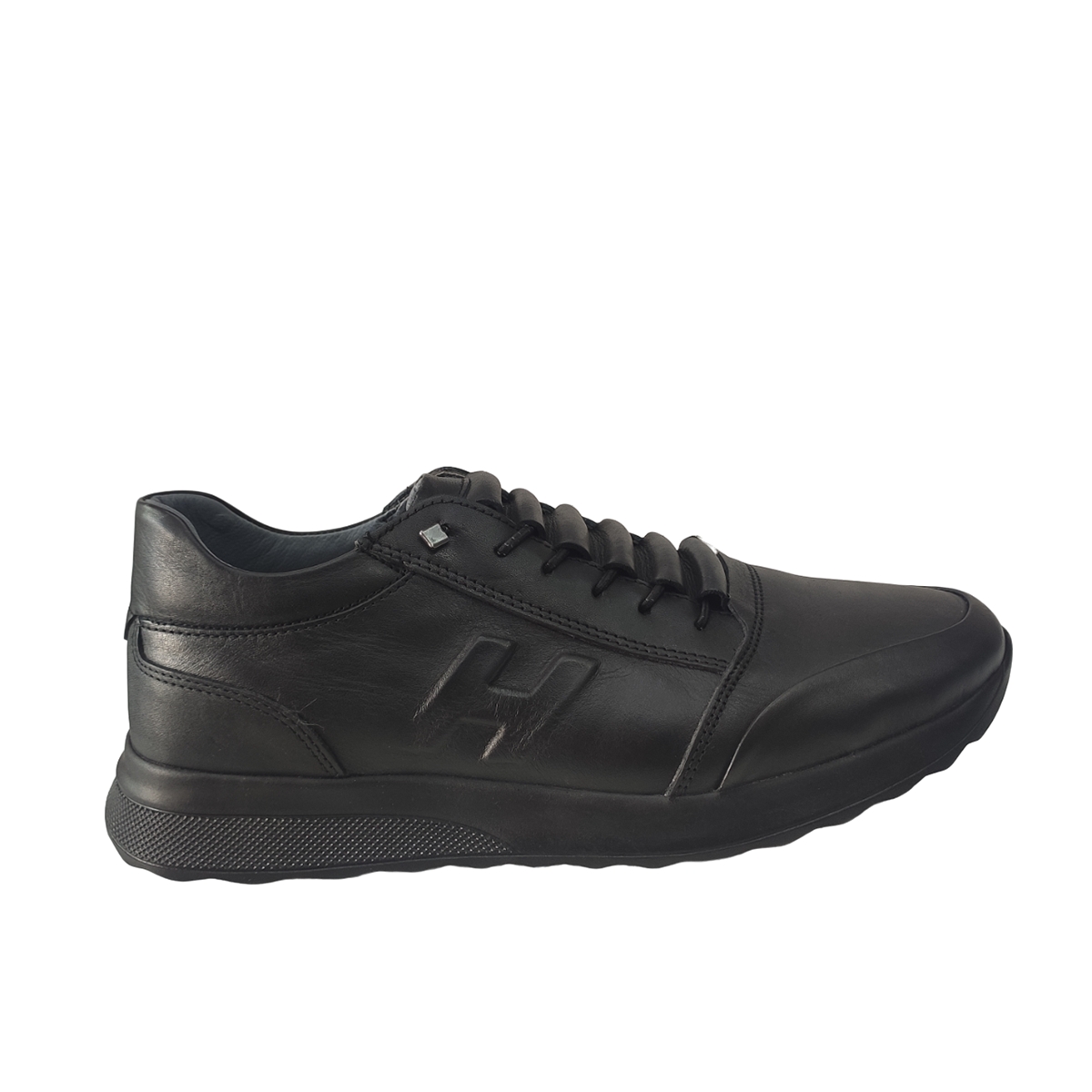 Ανδρικό δερμάτινο μαύρο RENZO, εξαιρετικής