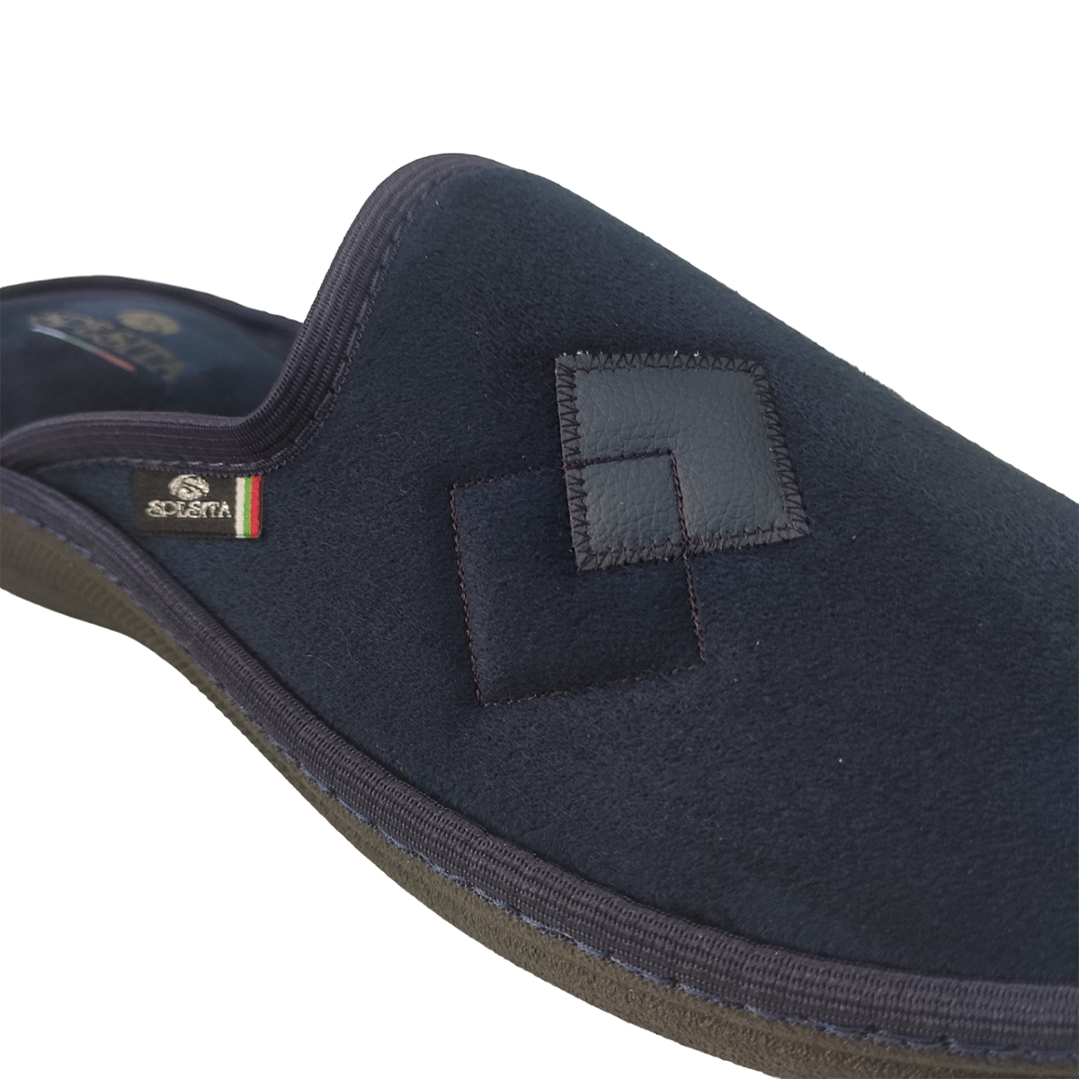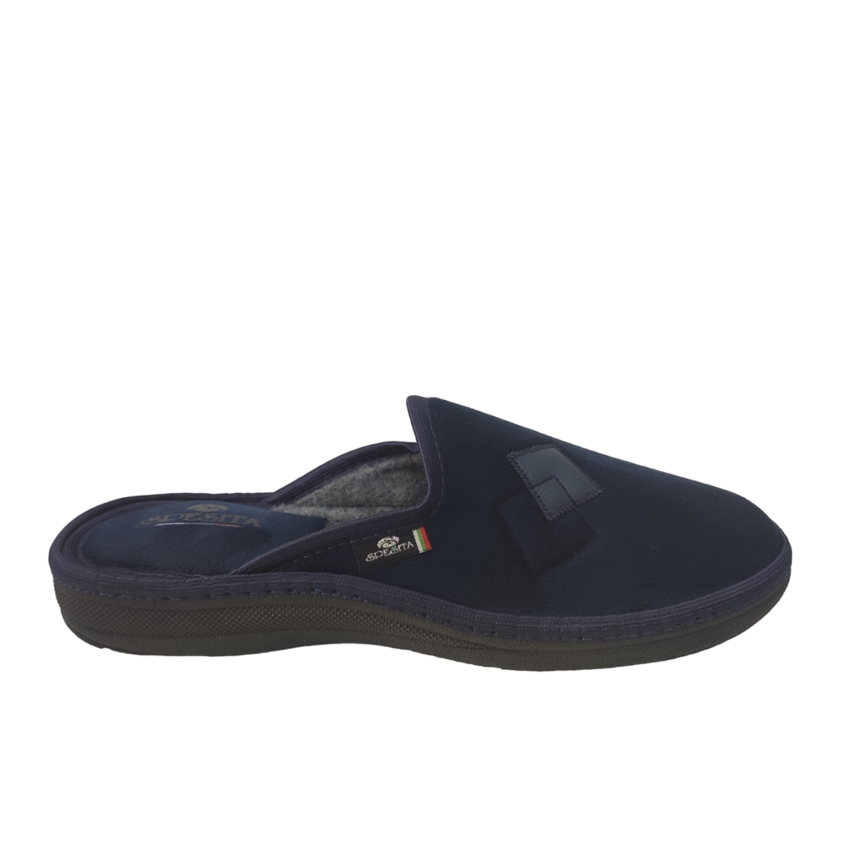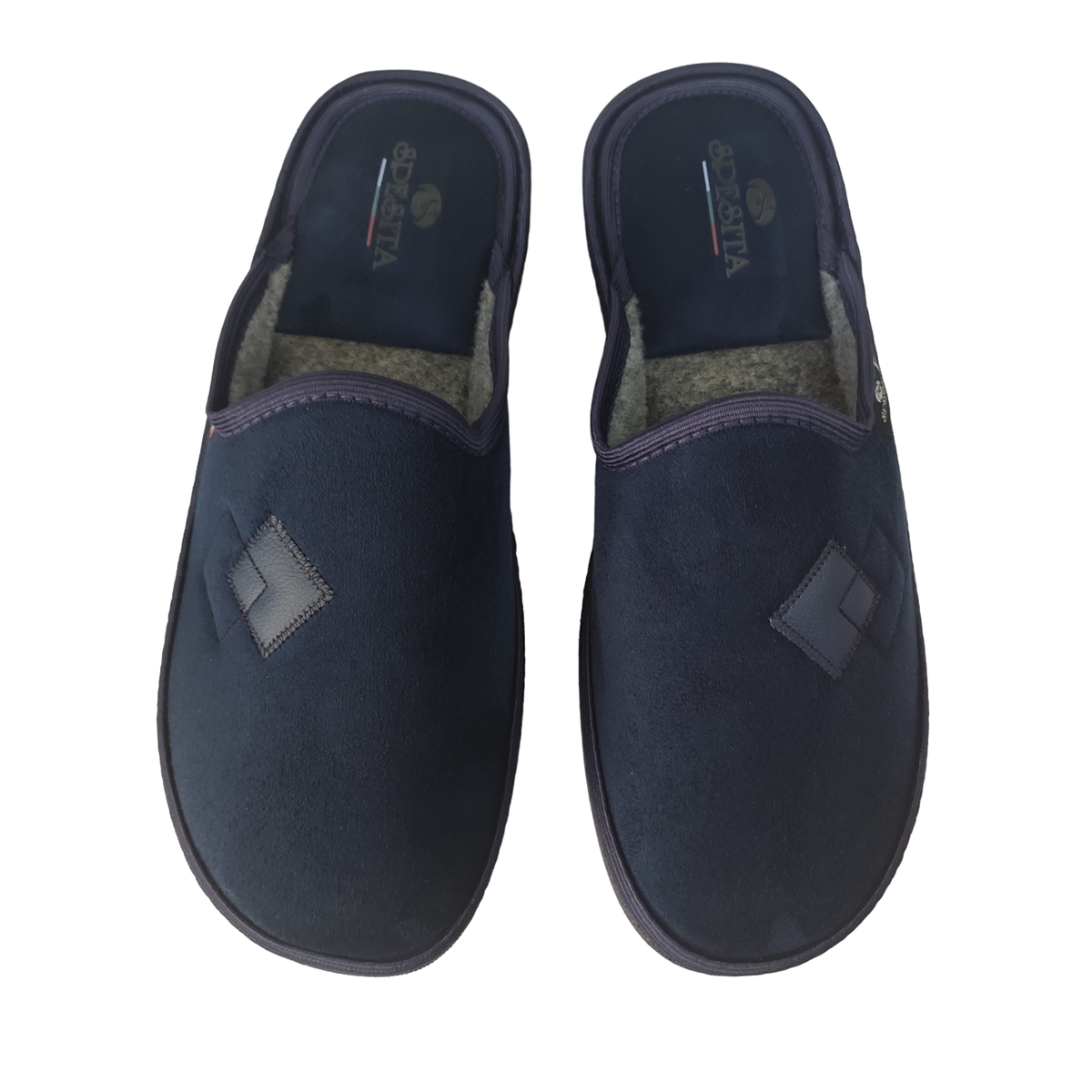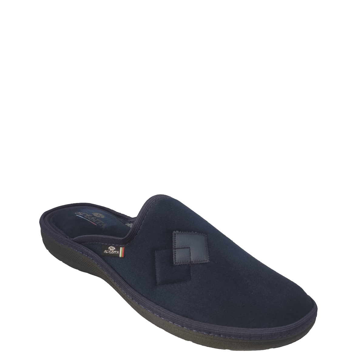 Aνδρική παντόφλα SPESITA σε μπλε χρώμα θα κρατήσει ζεστά τα πόδια σας στις καθημερινές δραστηριότητες στο σπίτι κατά την διάρκεια του χείμωνα.Εξωτερικά και εσωτερικά είναι απο βελούδο με ανατομικό πατο.