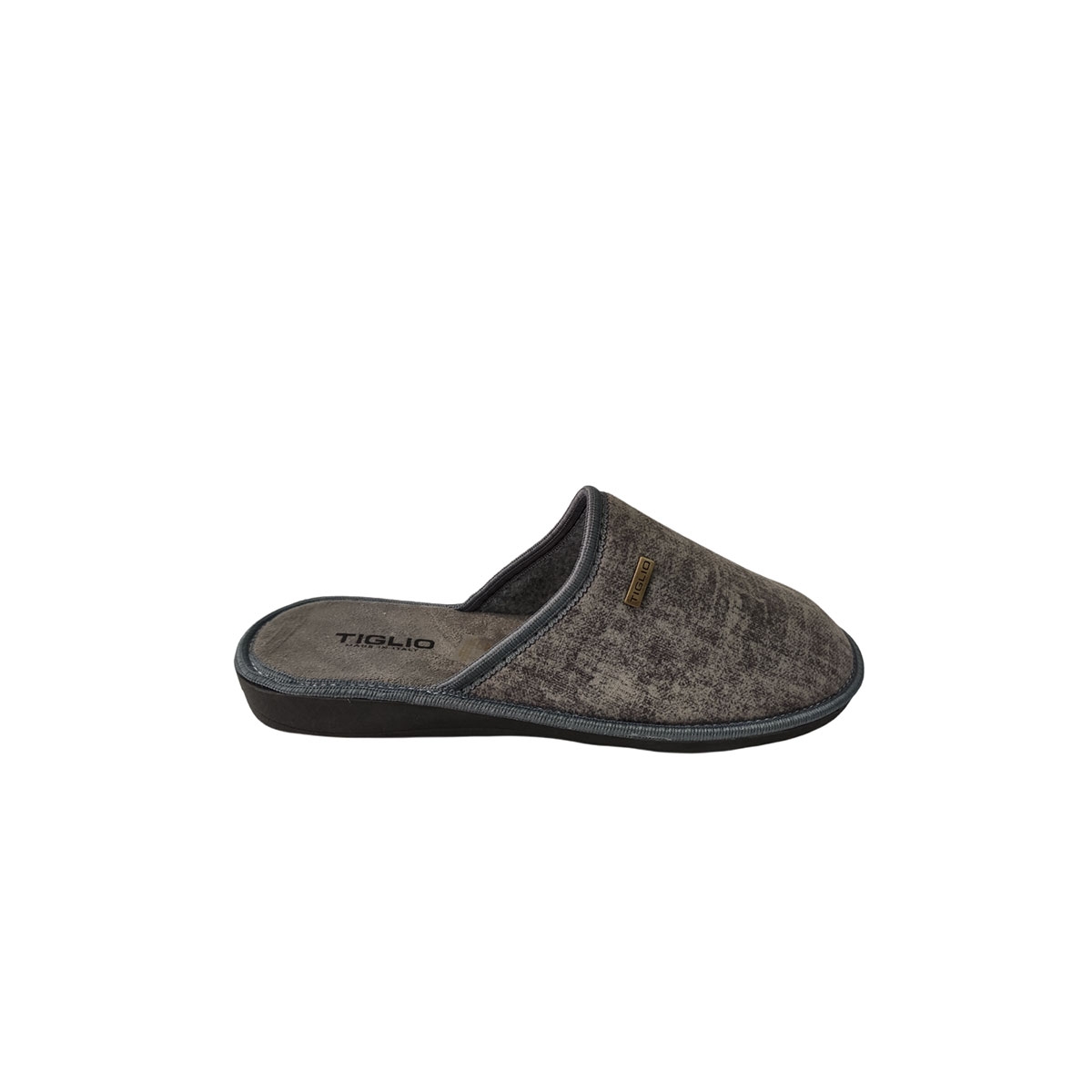 Ανδρική χειμερινή παντόφλα της εταιρείας TIGLIO Ιταλικής κατασκευής. Έχει υφασμάτινο πάτο και η φόδρα της είναι κατασκευασμένη από ποιοτική τσόχα. Το πάνω μέρος είναι από απαλό βελουτέ ύφασμα. Έχει σταθερή και αντιολισθητική σόλα. Η φόρμα της είναι κανονική.