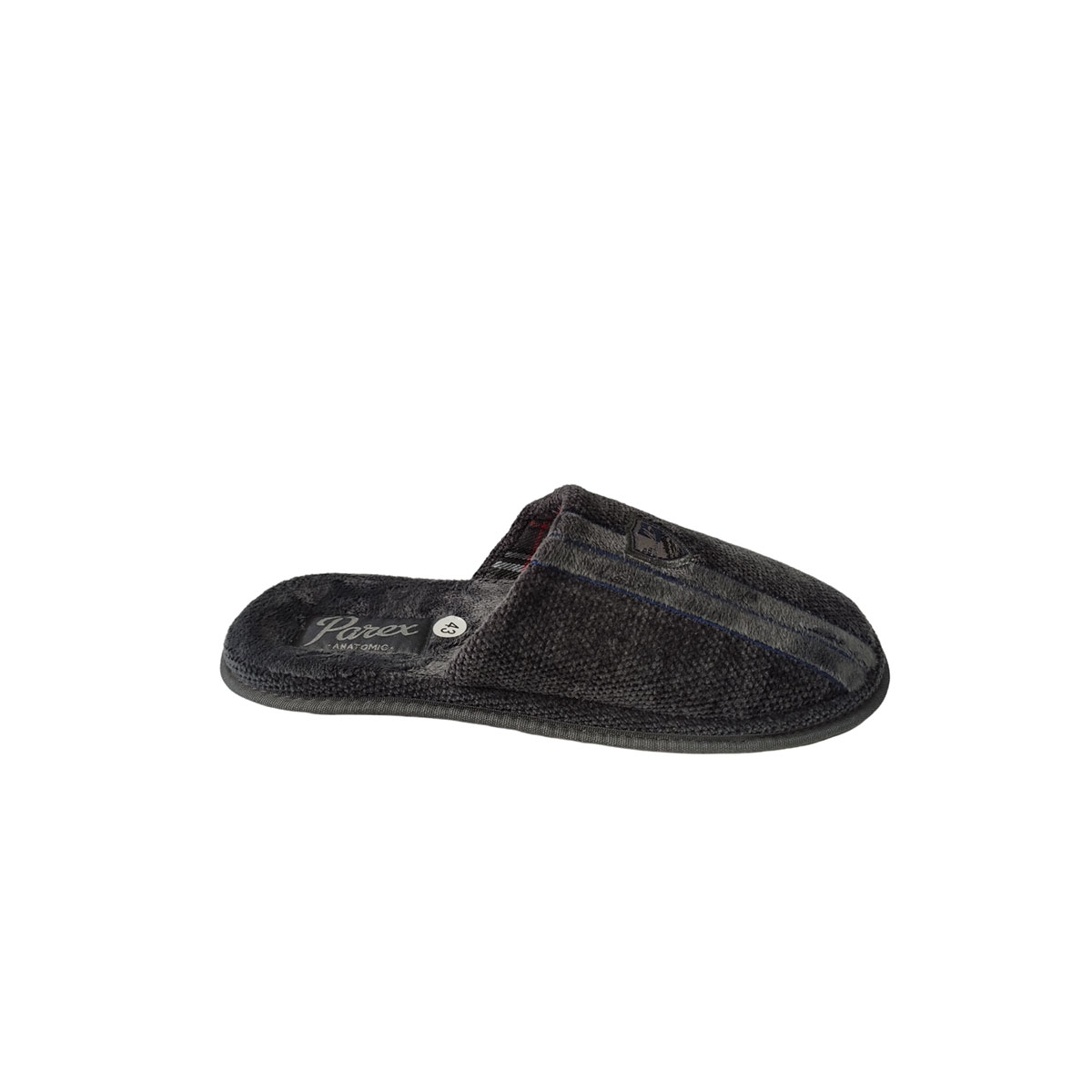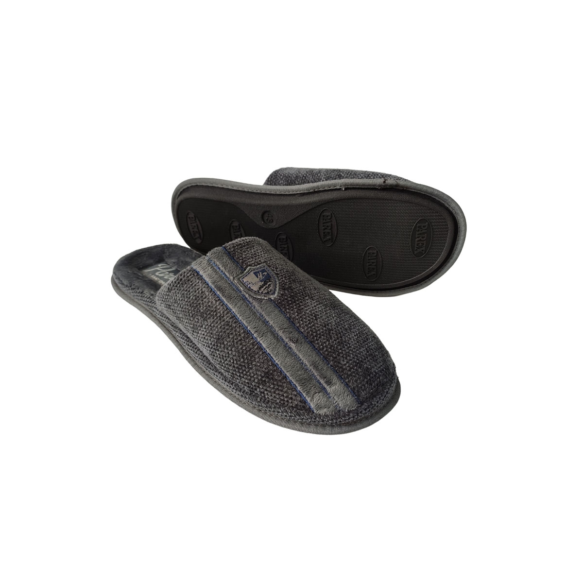Ανδρική παντόφλα PAREX υφασμάτινη με κεντημένο σχέδιο στο πάνω μέρος και αναπαυτικό πάτο με ανατομικές προδιαγραφές.Κλασικό σχέδιο για όλα τα γούστα.
