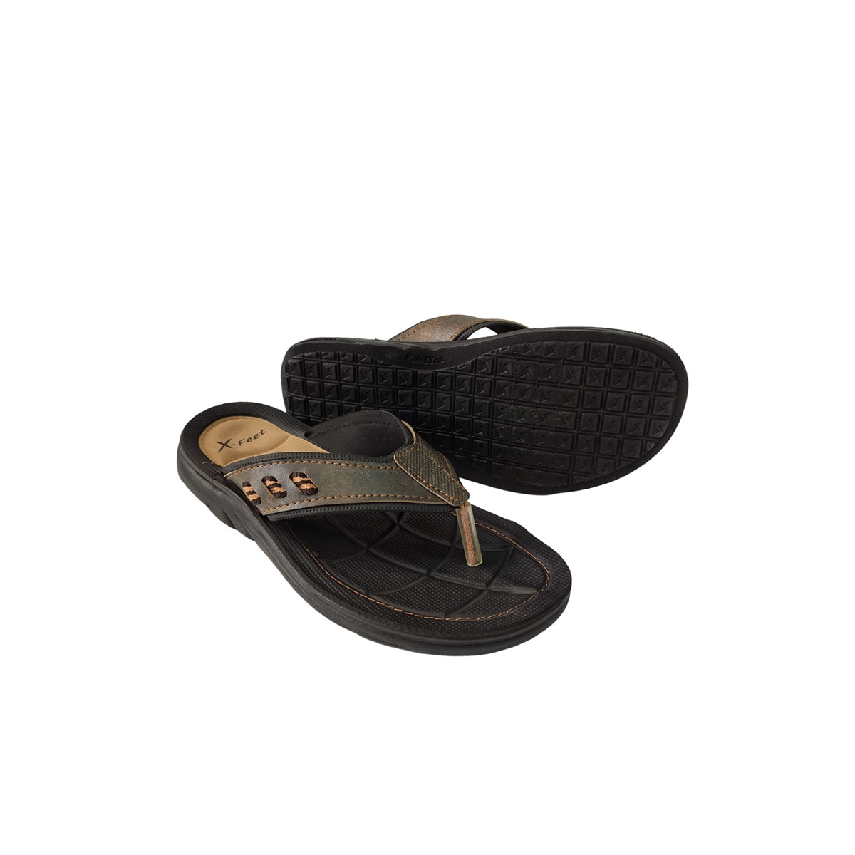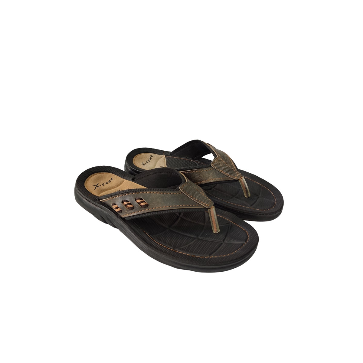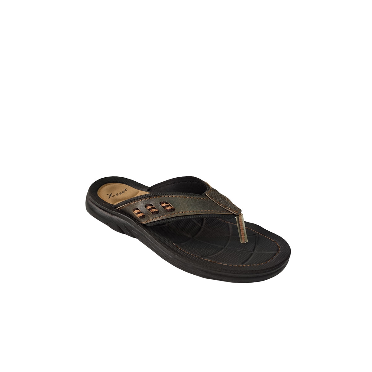 Ανδρική καλοκαιρινή δίχαλη παντόφλα X-FEET σε καφέ χρώμα Ελληνικής Κατασκευής με συνθετικό δέρμα το πάνω μέρος με δερμάτινο πάτο. Ανατομικού σχεδιασμού σόλα και φτιαγμένη από καουτσούκ για μεγαλύτερη ευλυγισία και άνεση στο περπάτημα. Ιδανική παντόφλα για τις καλοκαιρινές εξορμήσεις, την παραλία αλλά και για τις εξόδους σας.