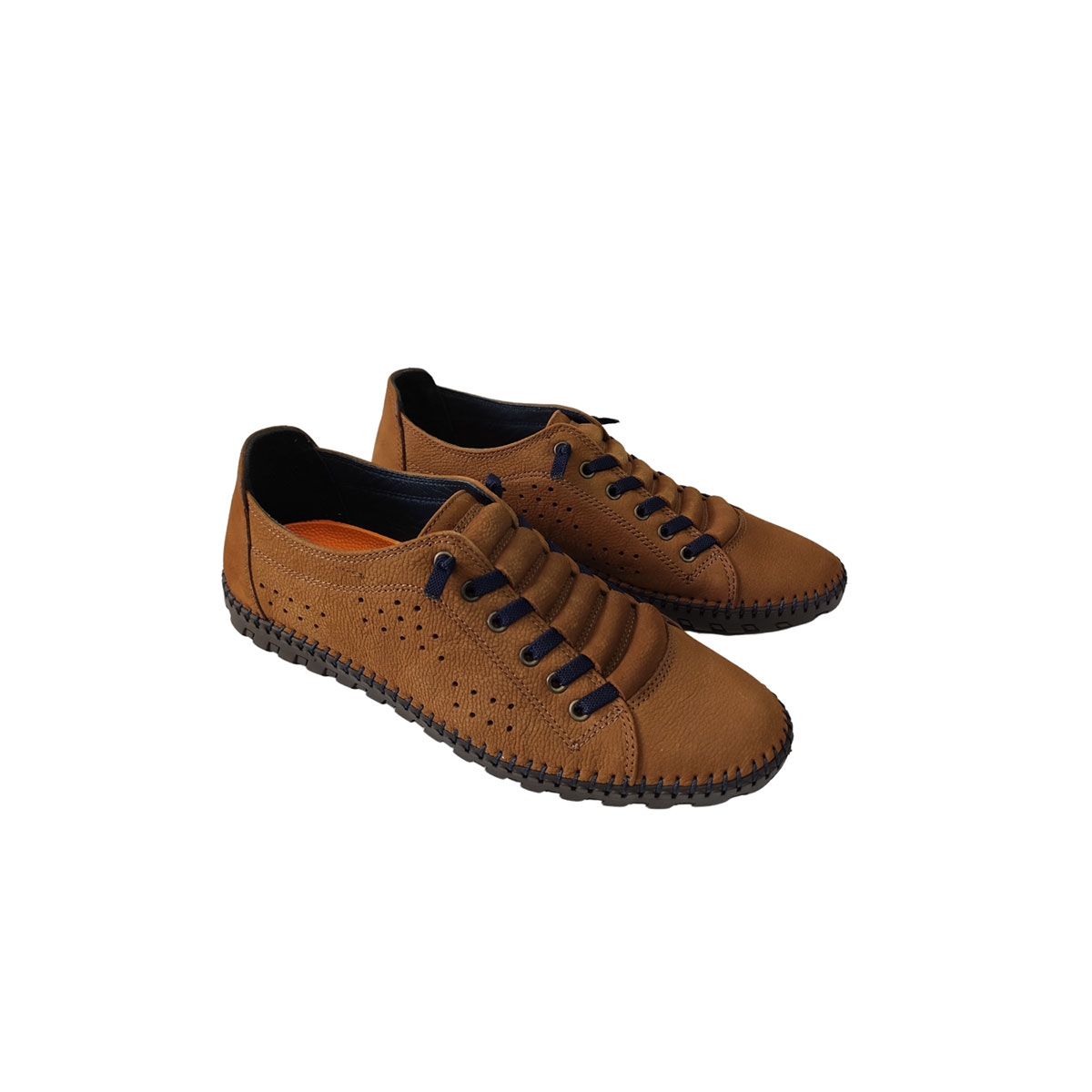 Ανδρικό ανατομικό δερμάτινο ταμπά AEROSTEP με σαμουά δέρμα η επάνω πλευρά και με μπλέ λαστιχάκι ελληνικής κατασκεύης, εξαιρετικής ποιότητας για άνετο και ξεκούραστο περπάτημα.