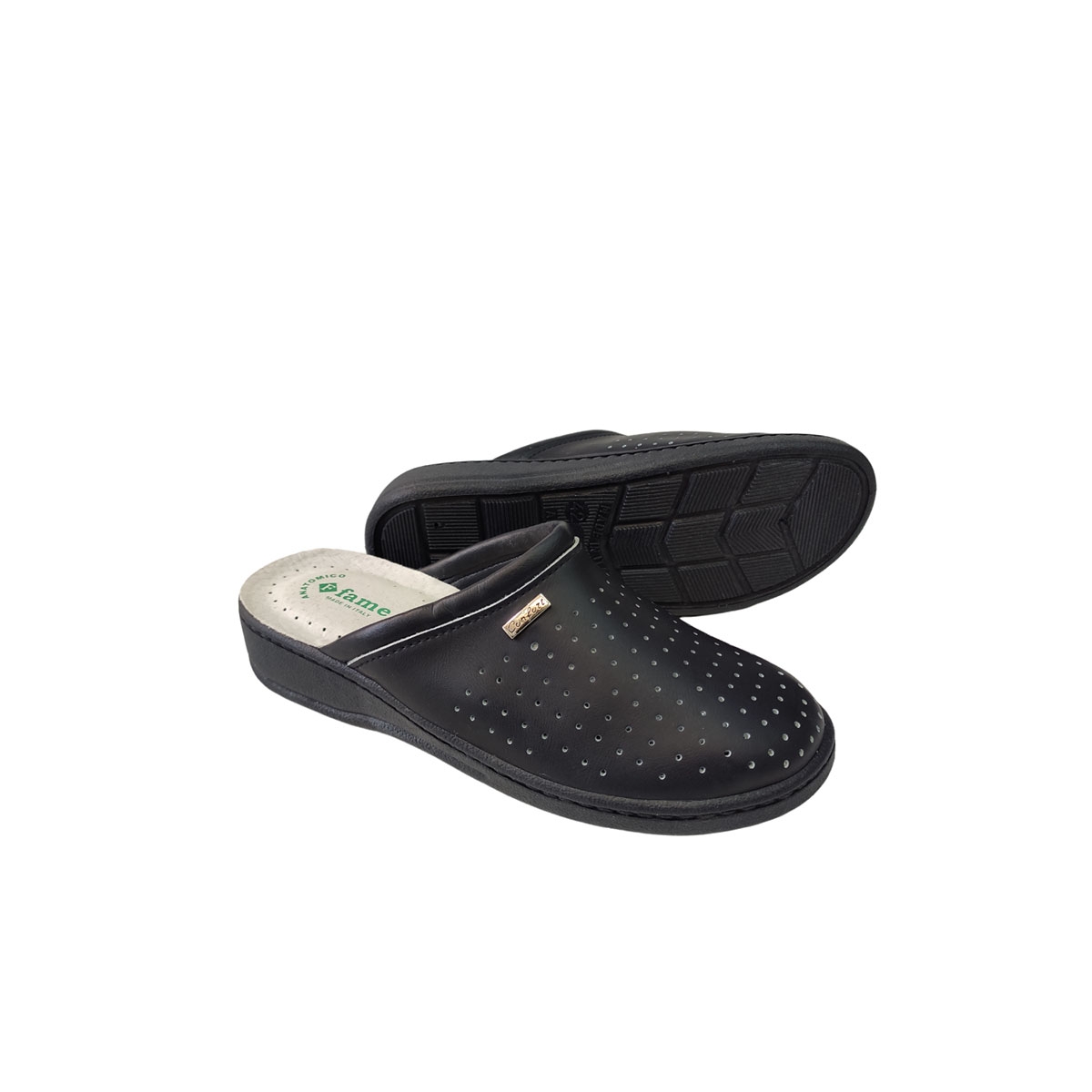 Σαμπό της εταιρείας FAME, ιδανική επιλογή για τις περιπτώσεις όπου η εργασία απαιτεί πολύωρη ορθοστασία όπως σε επαγγελματικούς τομείς περίθαλψης, κουζίνας και εστίασης. Κατασκευασμένα από δέρμα που δεν επιτρέπει την εφίδρωση του ποδιού και διαθέτουν ανατομικό πέλμα για άνετο περπάτημα.