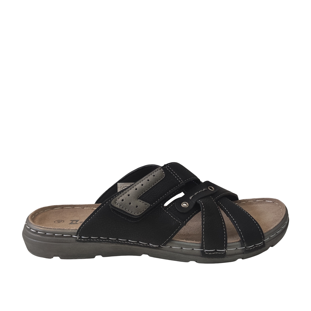 Men's Zakshoes slipper made of eco-leather in black. It has straps to adjust the