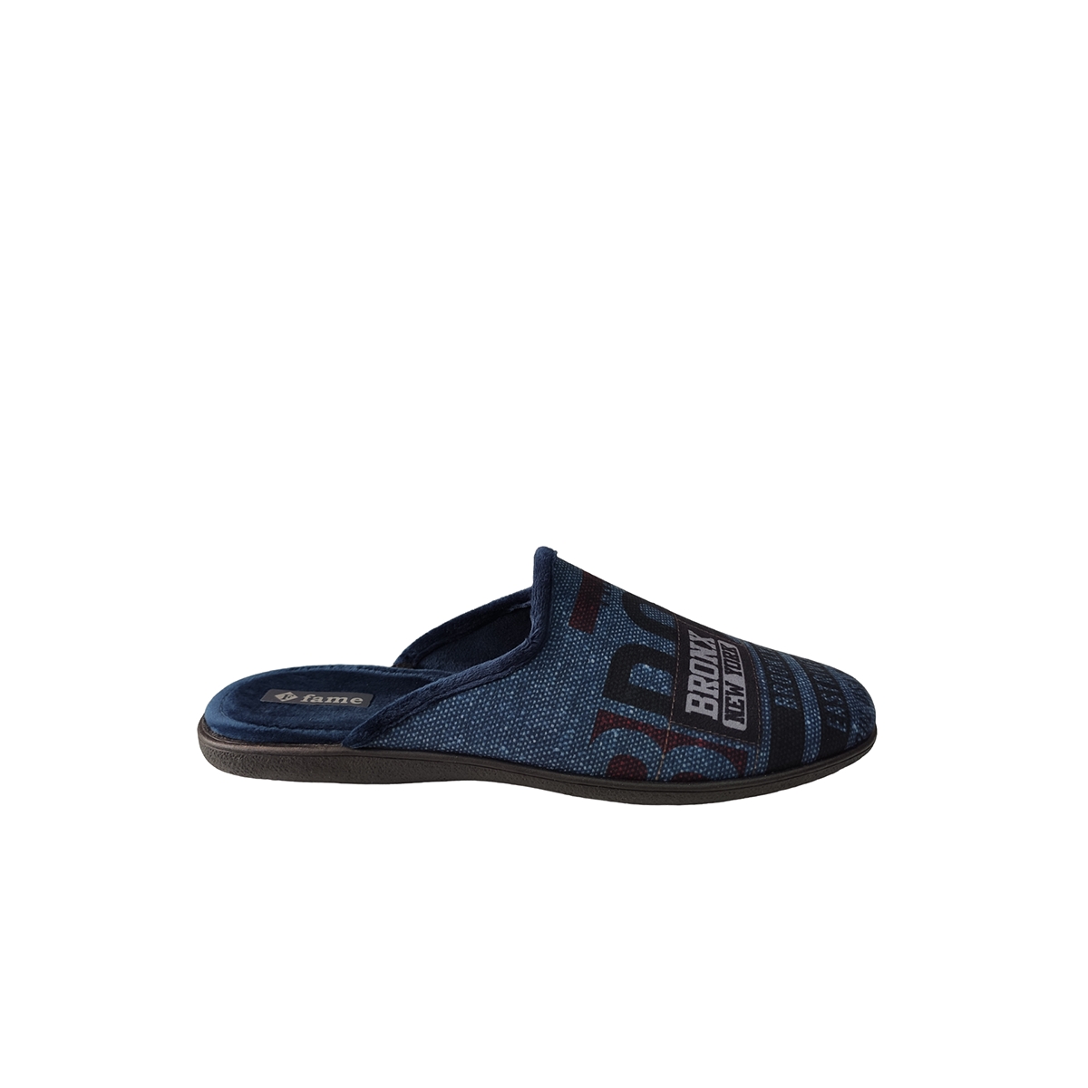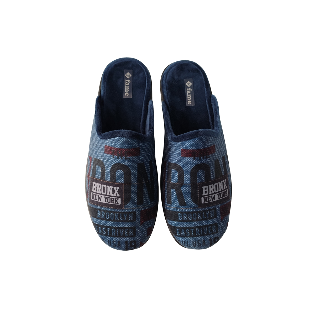 Ανδρική παντόφλα FAME υφασμάτινη στο πάνω μέρος και εσωτερικα βελουτέ.Μοντέρνο  σχέδιο για όλα τα γούστα.Ξεκούραστη παντόφλα για όλη τη διάρκεια της ημέρας.