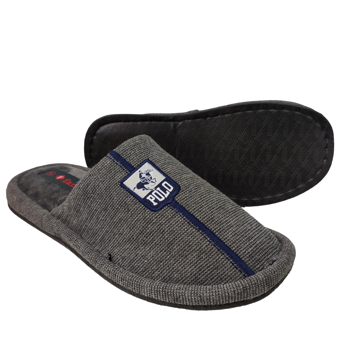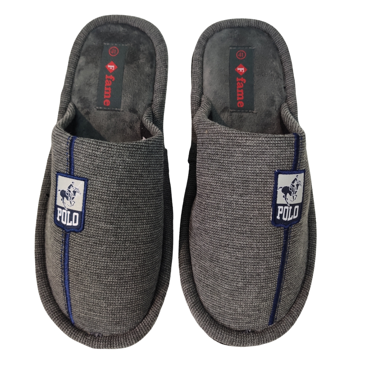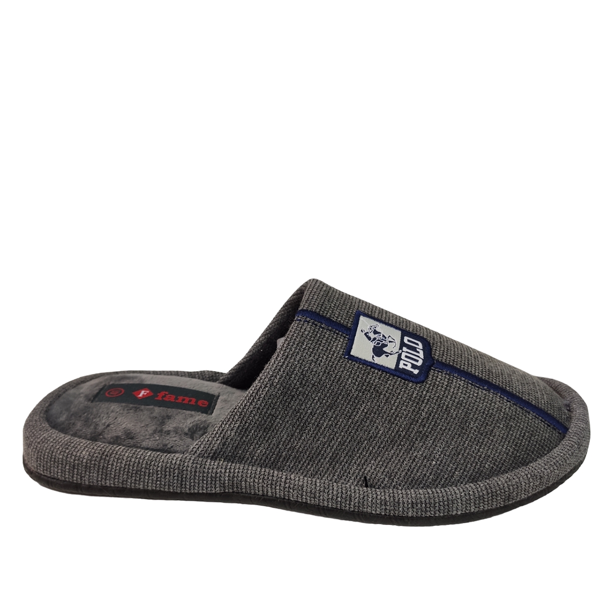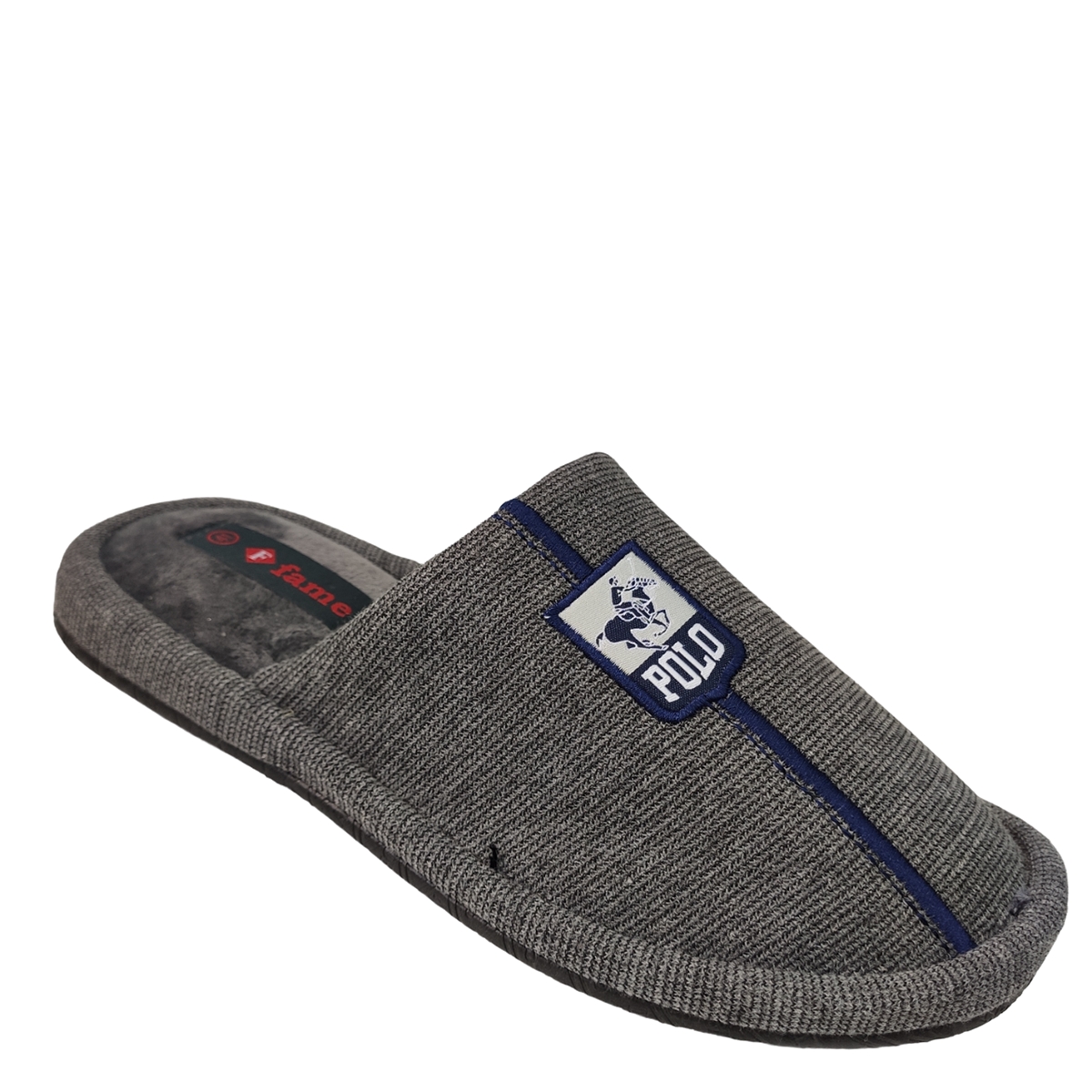 Ανδρική παντόφλα FAME υφασμάτινη με κεντημένο σχέδιο στο πάνω μέρος και αναπαυτικό πάτο .Κλασικό σχέδιο για όλα τα γούστα.