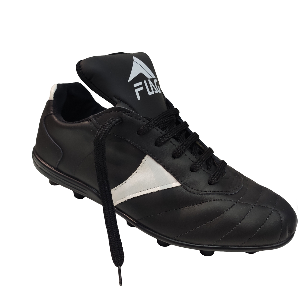 Ποδοσφαιρικό παπούτσι FLAG απο μαλακό  δέρμα που στηρίζει τους αστραγάλους σας.Κάνει τα σουτ καλύτερα και  τα απολαμβάνεις στα γήπεδα ,για κάθε είδους επιφάνεια,χάρη στην ευέλικτη εξωτερική τους σόλα.