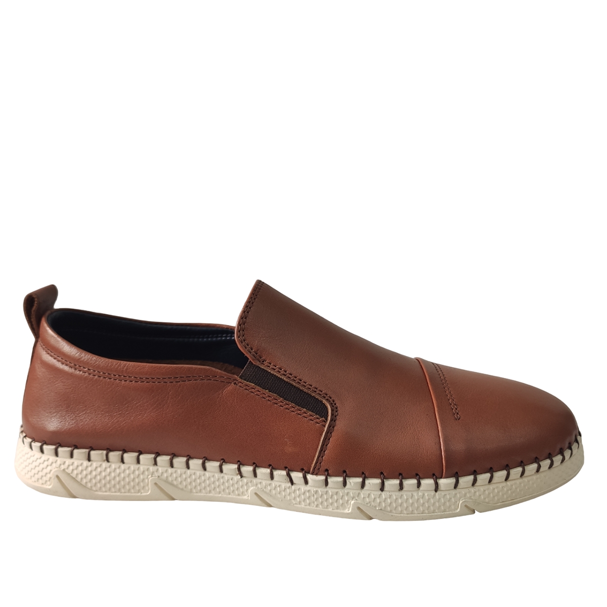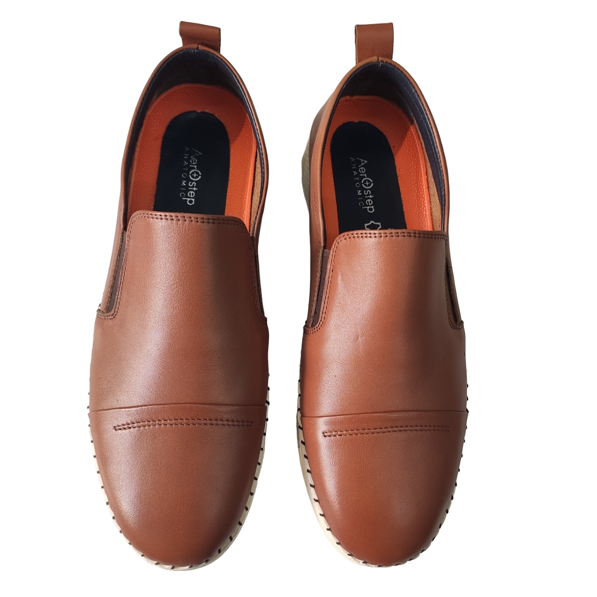 Ανδρικό ανατομικό δερμάτινο AEROSTEP σε ταμπά  χρώμα, εξαιρετικής ποιότητας για άνετο και ξεκούραστο περπάτημα.Ελληνικής κατασκευής.